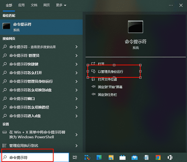 在某些情况下,你可能被要求以管理员身份打开命令行界面。你可以按下 Win + S 搜索 cmd,然后右键点击“命令提示符”,选择“以管理员身份运行”。