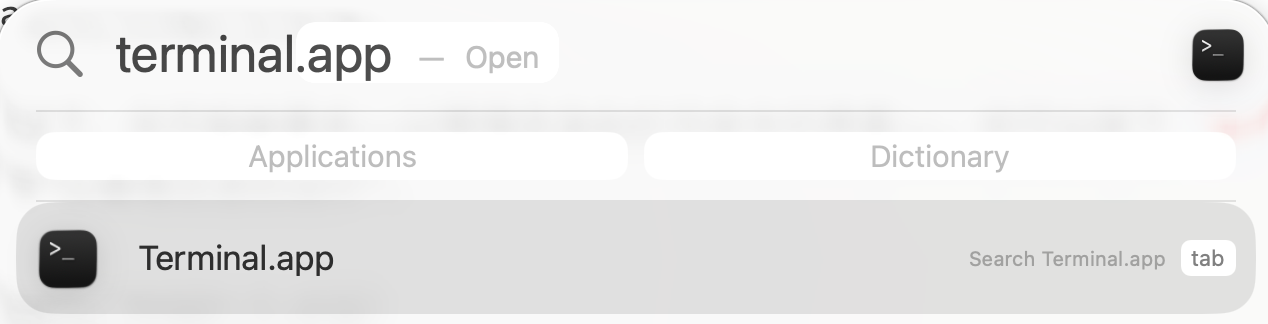 在 MacOS 系统中,命令行工具被称为 Terminal(终端)。你可以通过启动台(Launchpad)或 Spotlight(按下 Command + 空格 键)搜索 Terminal 并打开它。