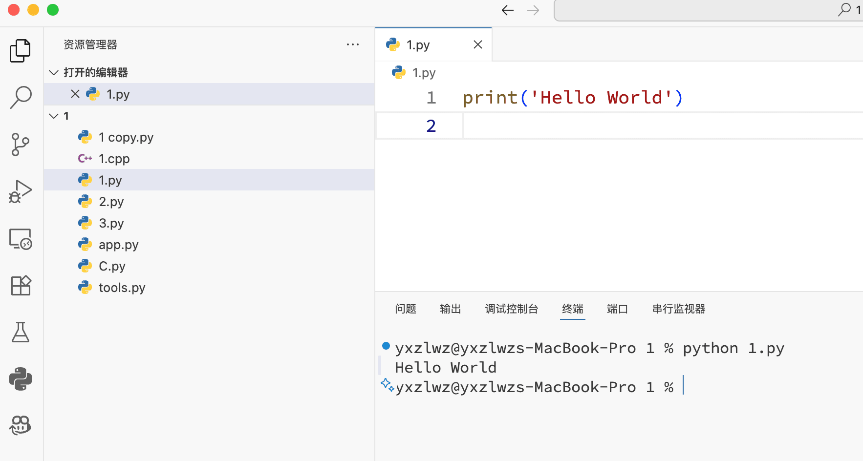因此,你可以直接使用相对路径来运行程序。例如,我想运行当前文件夹下的 1.py:
