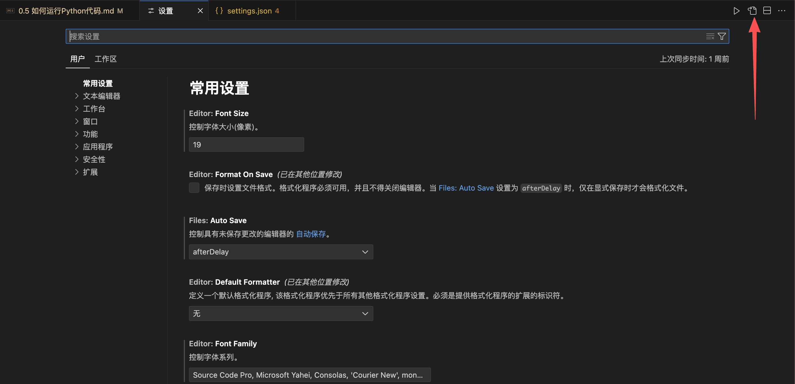 在设置界面(打开方式见上文),点击右上角的按钮打开配置文件: