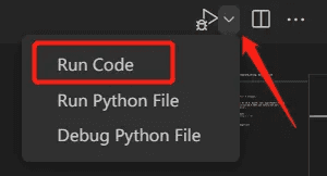 如果你的运行按钮如下图所示,有一个爬虫的角标,请先点击下拉三角,再选择 Run Code 选项:
