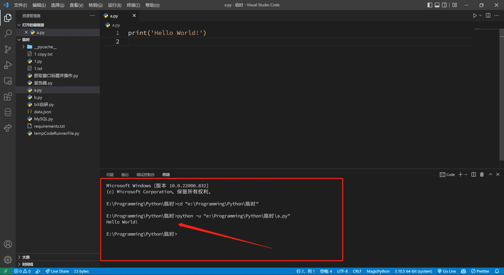 代码文件将在下方的终端运行出来。